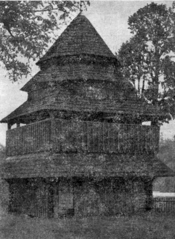 [1987 р.] Загальний вигляд]Розмір зображення: 585:800 піксел Дзвіниця. С. Ісаїв Турківського р-ну Львівської обл. 1663 р. Джерело: Народна архітектура українських Карпат. – К.: Наукова думка, 1987 р., с. 182, 190. |
