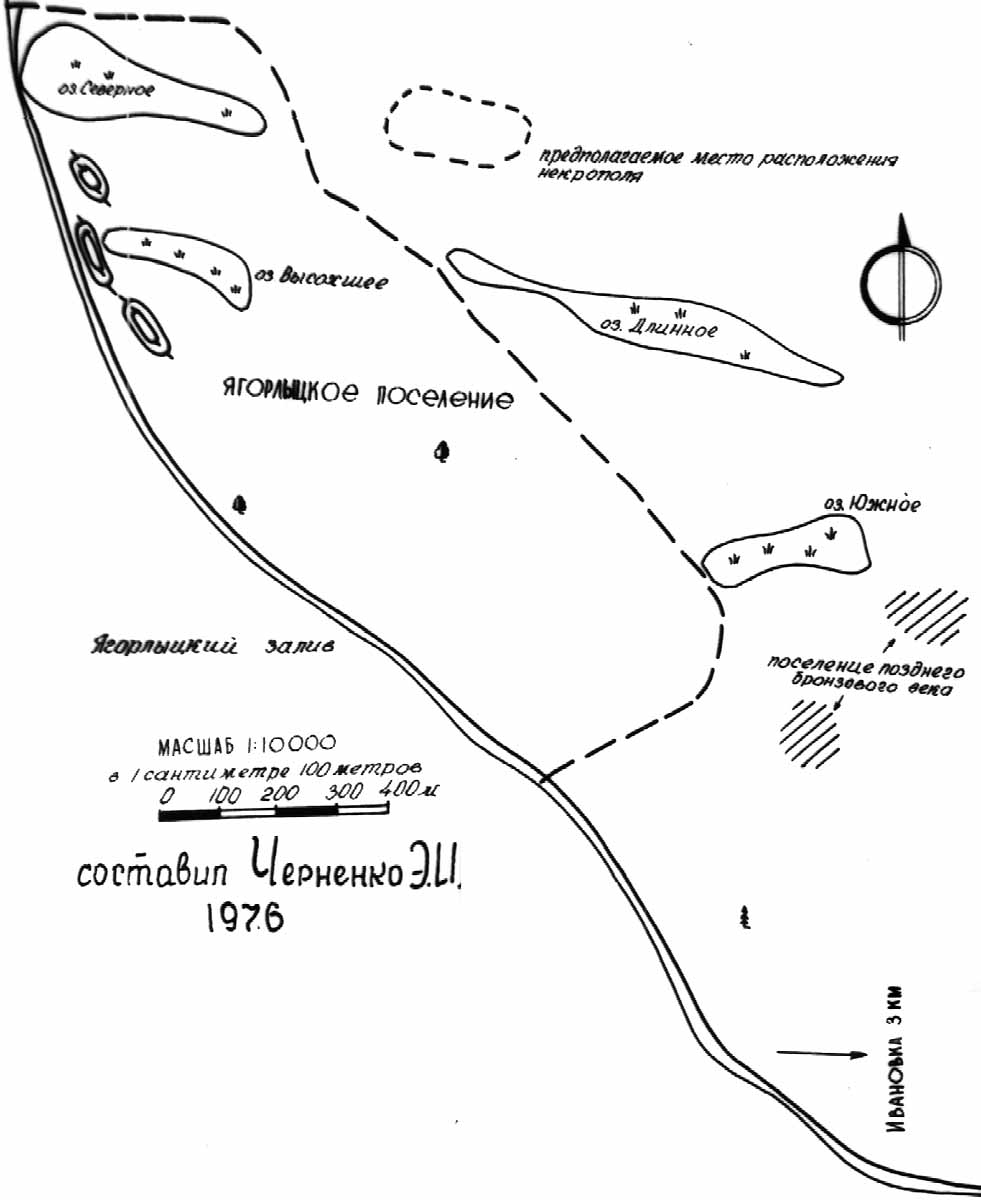 Островерхов А.С. Ягорлыцкое поселение. – “Археологические открытия 1973 г.”, М., 1974 г., с. 323.