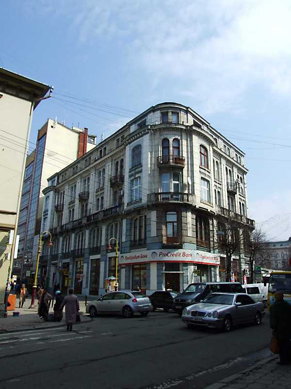 Ліворуч – вул. Бачинського, праворуч – вул. Січових стрільців. 5 квітня 2012 р. Фото М.І.Жарких.