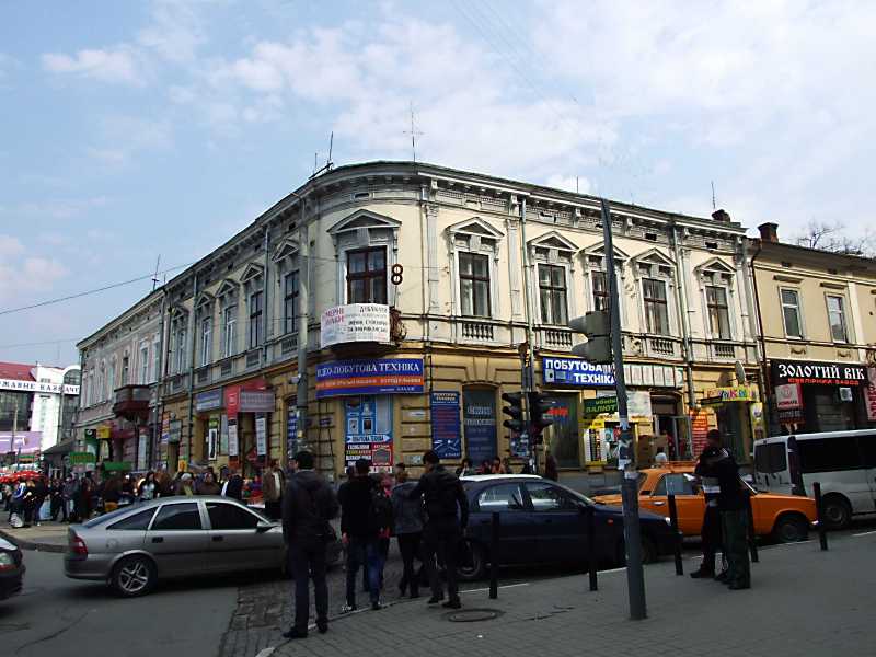 Ліворуч – вул. Дністровська, праворуч – вул. Галицька. 5 квітня 2012 р. Фото М.І.Жарких.