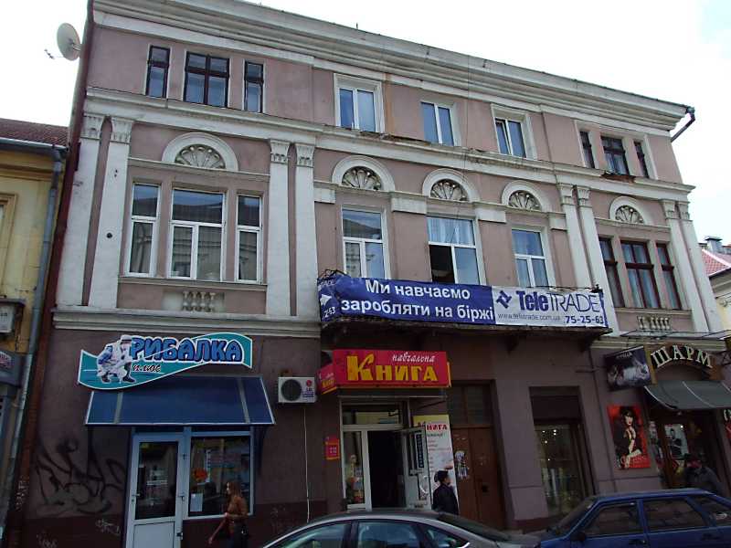 Житловий будинок (№ 39)Розмір зображення: 800:600 піксел Фасад по вул. Галицькій. 5 квітня 2012 р. Фото М.І.Жарких. № 39 – житловий будинок 19 – поч. 20 ст. (архіт.) [Памятники истории и культуры Украинской ССР. – К.: 1987 г., с. 215]. |