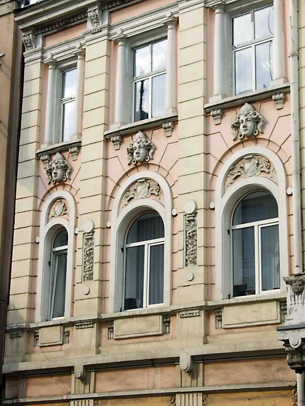 2012 р. Фрагмент фасаду по вул. новгородськійРозмір зображення: 600:800 піксел 5 квітня 2012 р. Фото М.І.Жарких. |