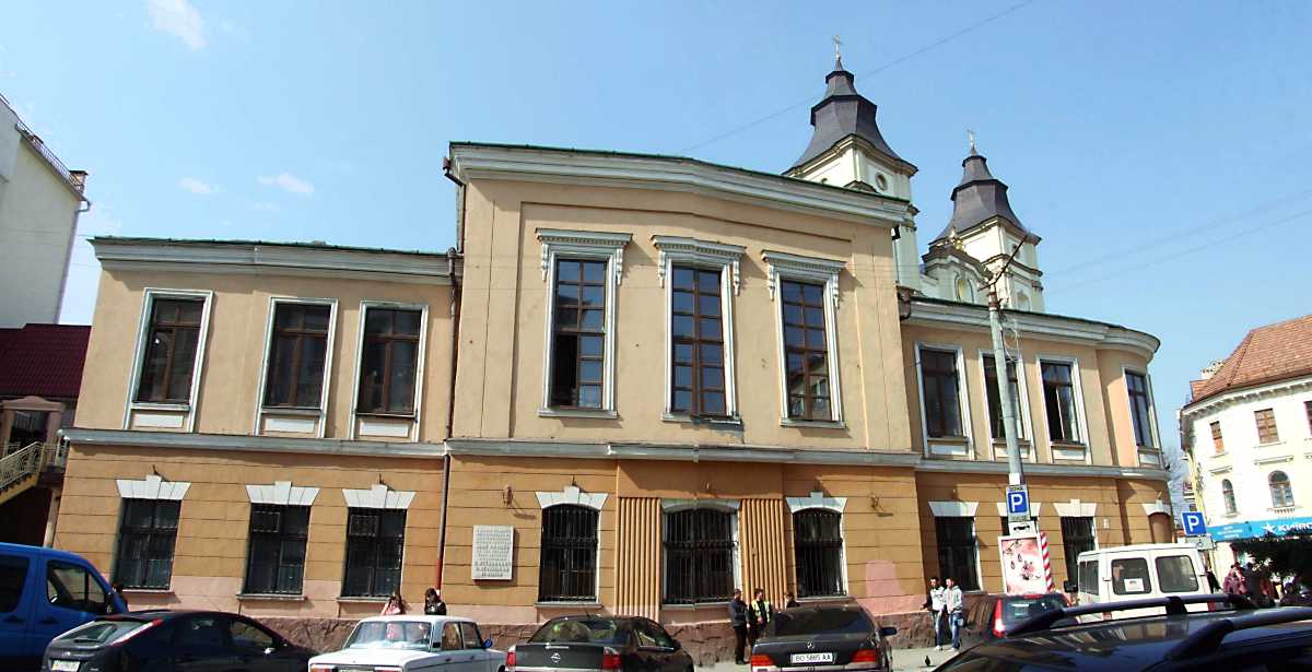2012 р. Головний фасад Розмір зображення: 1200:615 піксел 5 квітня 2012 р. Фото М.І.Жарких. Вкладені елементи Ліва частина Права частина Вікно 2-го поверху Меморіальна дошка І. Франку