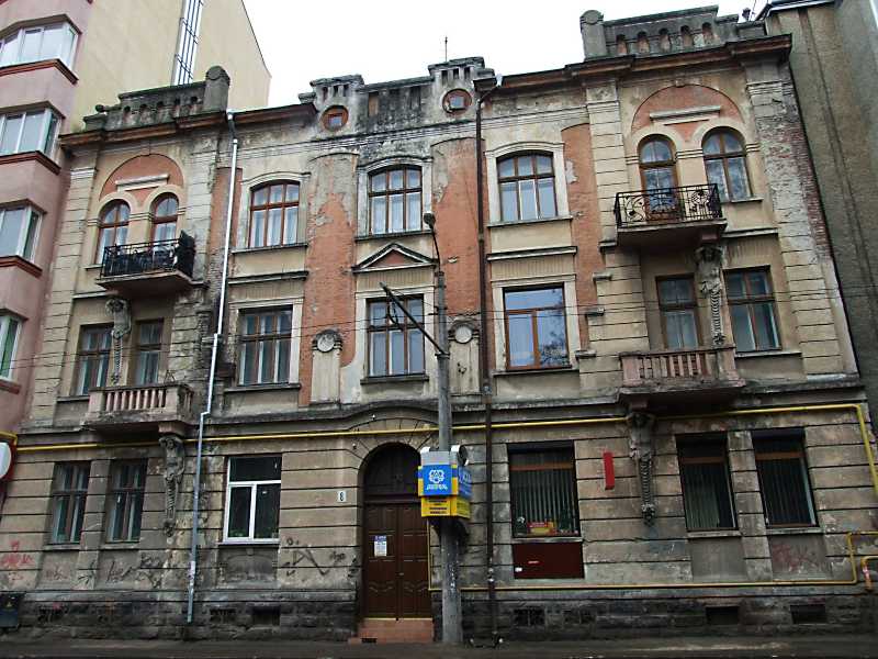 Житловий будинок (№ 8) Розмір зображення: 800:600 піксел 5 квітня 2012 р. Фото М.І.Жарких. Вкладені елементи 2012 р. Фрагмент 2-го поверху 2012 р. Консоль балкона у вигляді атланта 2012 р. Консоль балкона у вигляді атланта
