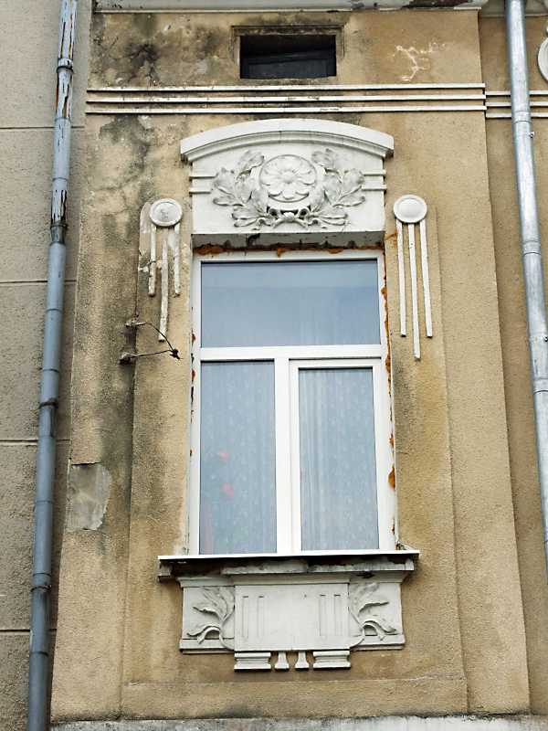 Вікно 2-го поверху Розмір зображення: 600:800 піксел 5 квітня 2012 р. Фото М.І.Жарких. Вкладені елементи Сецесійний рельєф сандрика