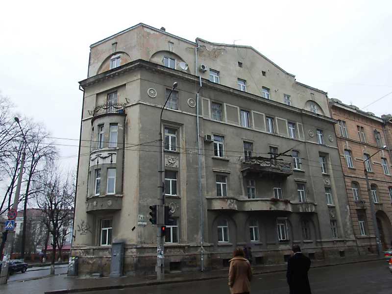 2012 р. Фасад по вул. Гаркуші Розмір зображення: 800:600 піксел 5 квітня 2012 р. Фото М.І.Жарких. Вкладені елементи Рельєфрна вставка