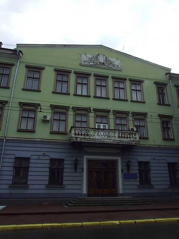 2012 р. Центральна частина головного фасаду Розмір зображення: 600:800 піксел 5 квітня 2012 р. Фото М.І.Жарких. Вкладені елементи Фронтон з рельєфом
