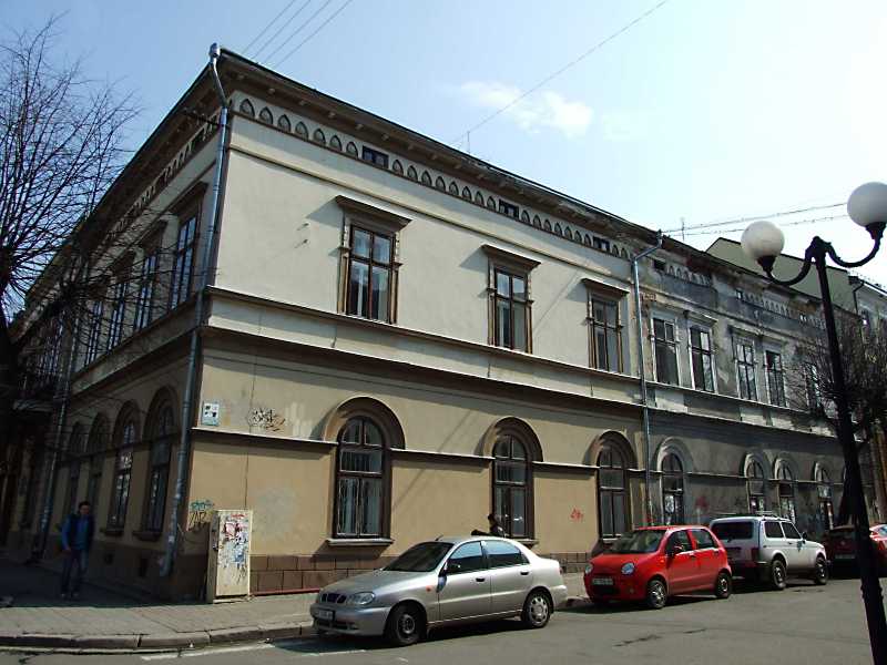 Будинок (№ 14)Розмір зображення: 800:600 піксел Ліворуч – вул. Мельничука, праворуч – площа Міцкевича (фактично – провулок, який з’єднує пл. Міцкевича з вул. Мельничука, окремої назви не має). 5 квітня 2012 р. Фото М.І.Жарких. |