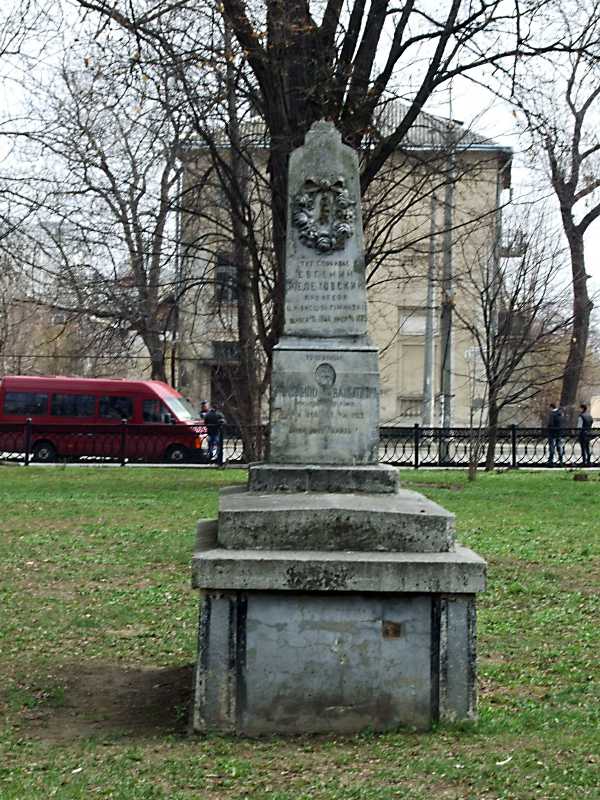 Напис: «Тут спочиває Евгений Желеховский, професор ц.к. висшої гімназії. Народився 24 / 12 1844, умер 18 / 2 1885».