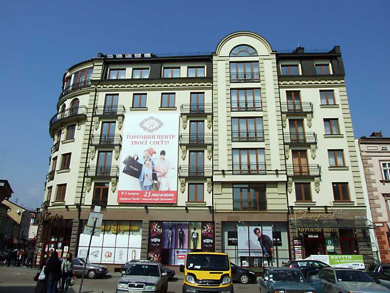 2012 р. Фасад по пл. Ринок Розмір зображення: 800:600 піксел 5 квітня 2012 р. Фото М.І.Жарких. Вище | Наступна сторінка