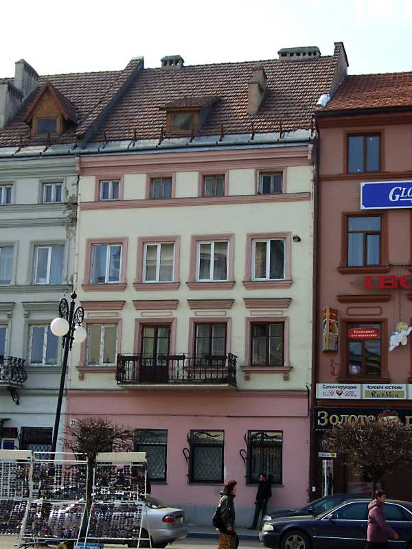 Житловий будинок (вул. Галицька, № 23)Розмір зображення: 600:800 піксел 5 квітня 2012 р. Фото М.І.Жарких. № 23 – житловий будинок 19 – поч. 20 ст. (архіт.) [Памятники истории и культуры Украинской ССР. – К.: 1987 г., с. 215]. |