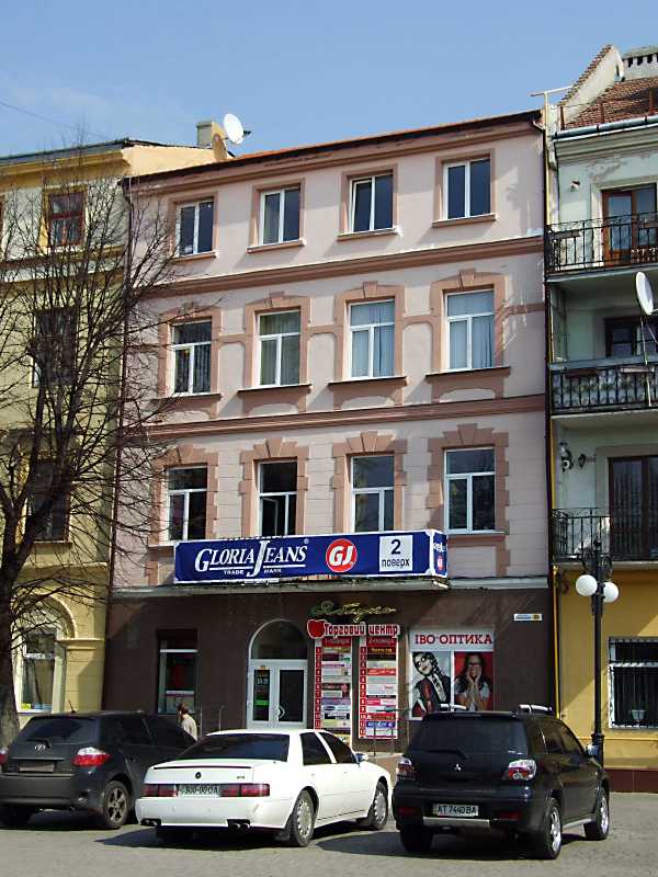 2012 р. Будинок по вул. Галицькій, 25Розмір зображення: 600:800 піксел Вигляд з боку площі Шептицького, на яку виходить задній фасад будинку. 5 квітня 2012 р. Фото М.І.Жарких. |