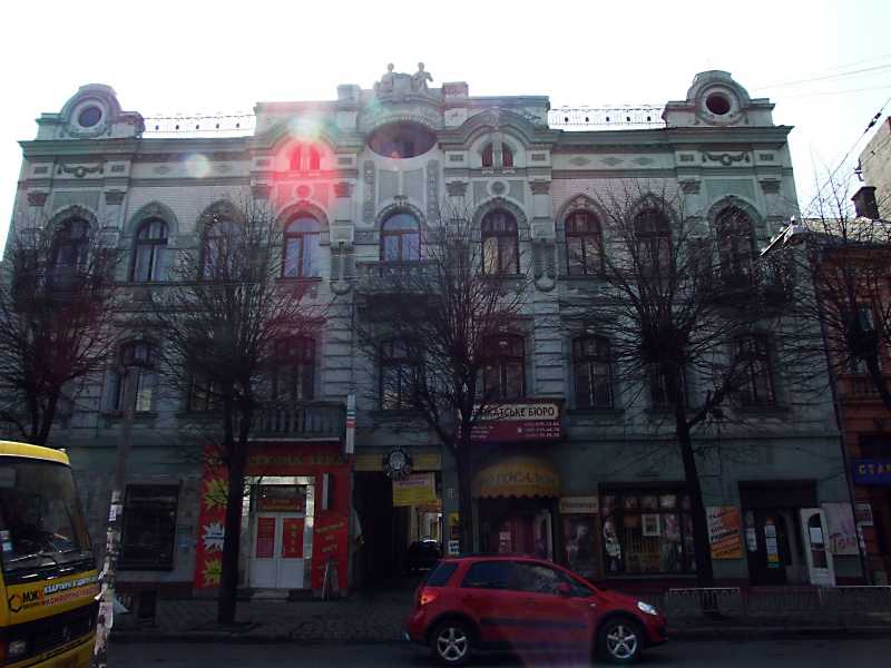 Торговельний будинок (№ 16)Розмір зображення: 800:600 піксел 5 квітня 2012 р. Фото М.І.Жарких. № 16 Торговельний будинок і кінотеатр “Олімпія”, 1911 р. (архіт.) [Памятники истории и культуры Украинской ССР. – К.: 1987 г., с. 218]. |
