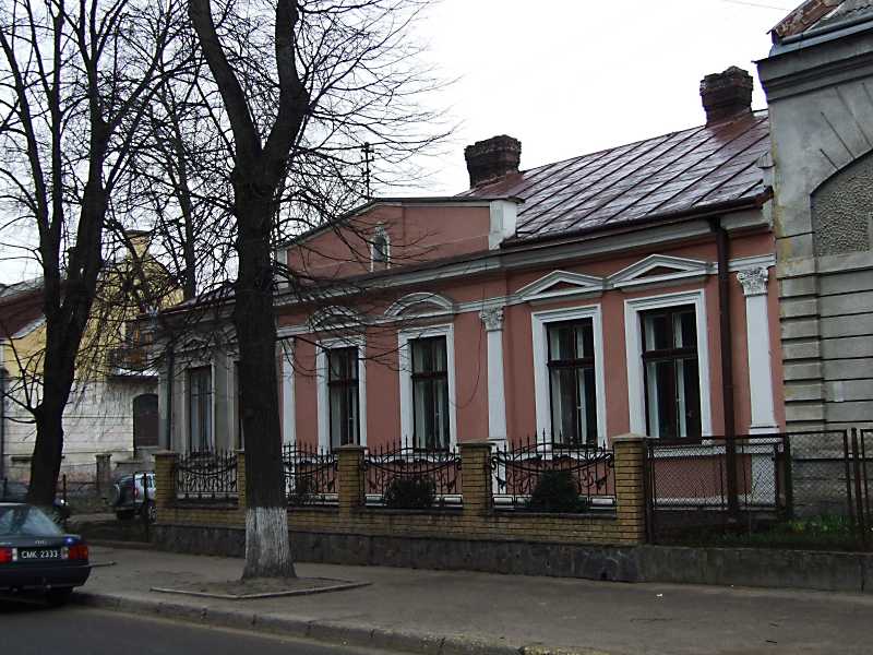 Вілла (№ 13)Розмір зображення: 800:600 піксел 5 квітня 2012 р. Фото М.І.Жарких. № 13 – Житловий будинок поч. 20 ст. (архіт.) [Памятники истории и культуры Украинской ССР. – К.: 1987 г., с. 216]. На плані міста будинок має адресу вул. Лермонтова, 2. |