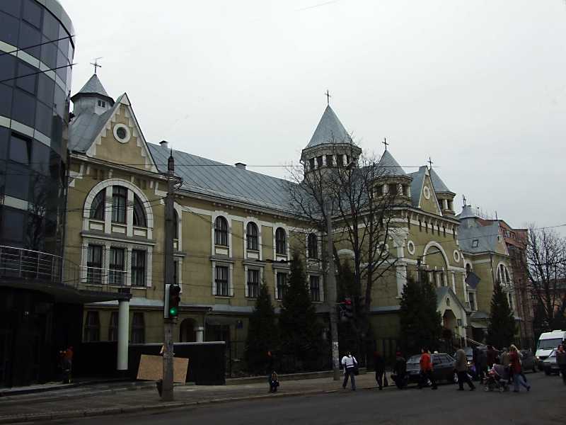 Архітектори І. Левинський, О. Лушпинський; добудова 1938 року (архіт. М. Грицак).