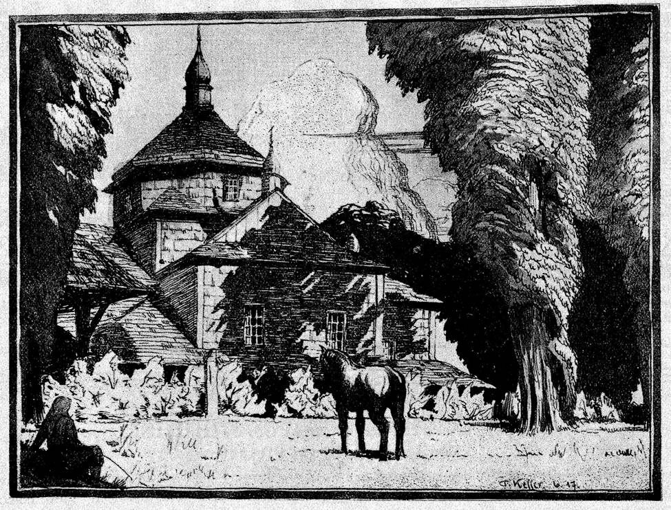 1917 р. Загальний виглядРозмір зображення: 975:742 піксел Церква Св. арх. Михайла в Сернках Середніх (Діброві). Автор Келлер, 1917 р. Зі статті: Василь Слободян Наші церкви чужими очима (16.07.2018) |