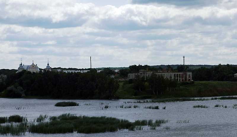 Вид на Новий Заслав від замку. Ліворуч – кляштор місіонерів, праворуч – садиба Сангушків. 26 червня 2011 р. Фото М.І.Жарких.