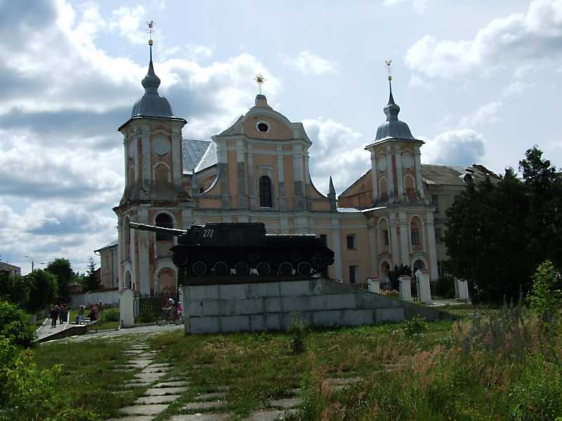 2011 р. Костел. Вигляд із заходуРозмір зображення: 800:600 піксел На передньому плані – большевицька самохідна гармата ЙСУ-152. 26 червня 2011 р. Фото М.І.Жарких. |