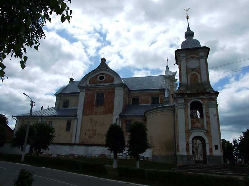 2011 р. Костел. Вигляд з півночі Розмір зображення: 800:600 піксел 26 червня 2011 р. Фото М.І.Жарких. Вкладені елементи Вівтар і трансепт