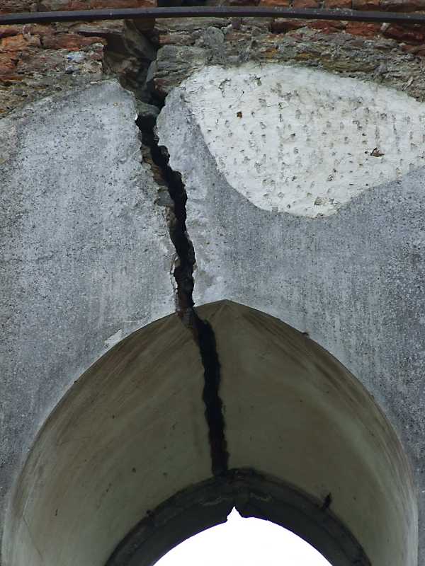 Загрозлива наскрізна тріщина над вікном Розмір зображення: 600:800 піксел 26 червня 2011 р. Фото М.І.Жарких. Вище | Наступна сторінка