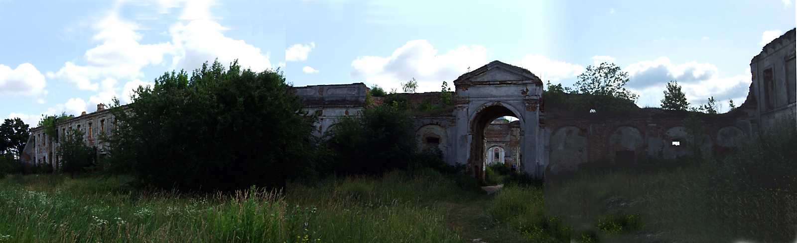 2011 р. Панорама із заходу Розмір зображення: 1600:489 піксел 26 червня 2011 р. Фото М.І.Жарких. Вкладені елементи Північний корпус Ліва частина західного корпусу Права частина західного корпусу