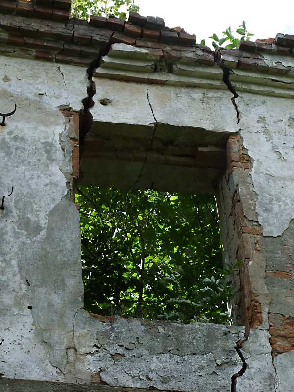 Вікно 2-го поверхуРозмір зображення: 600:800 піксел Загрозливі тріщини у перемичці! 26 червня 2011 р. Фото М.І.Жарких. |