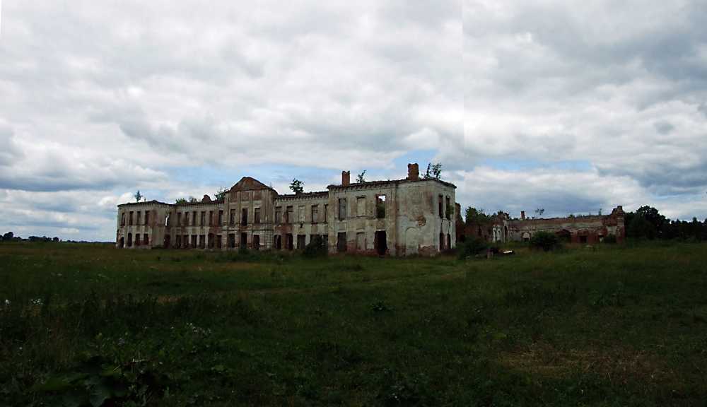 2011 р. Панорама з південного сходу Розмір зображення: 1000:576 піксел 26 червня 2011 р. Фото М.І.Жарких. Вкладені елементи Палац Фрагмент палацу та дворик з аркадою