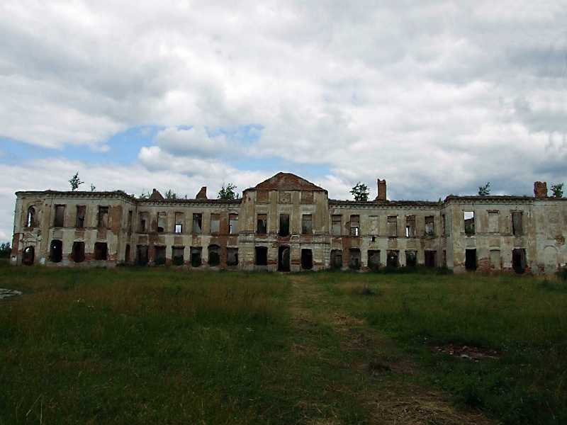 2011 р. Загальний вигляд з півдня Розмір зображення: 800:600 піксел 26 червня 2011 р. Фото М.І.Жарких. Вкладені елементи Західний ризаліт Західна частина південного фасаду Центральна частина головного фасаду Східна частина південного фасаду Східний ризаліт