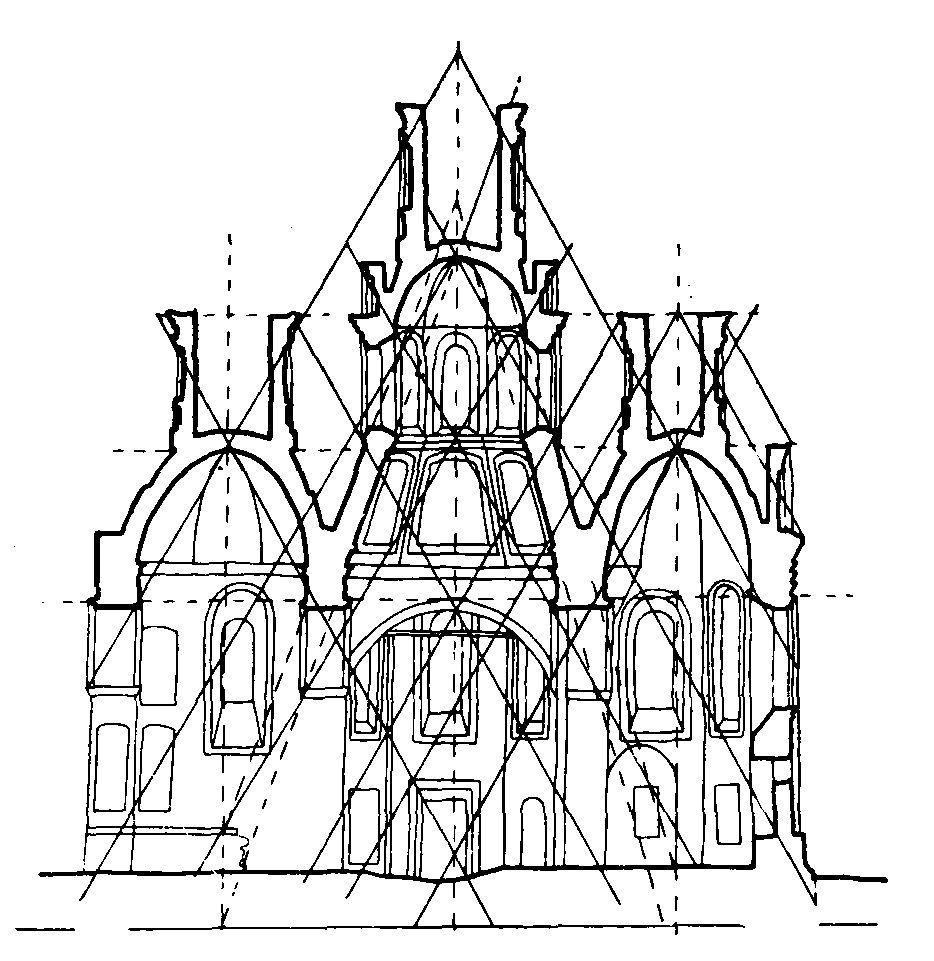 Спасский собор в г. Изюме, 1684 г. Пропорциональный анализ разреза (стр. 152)
