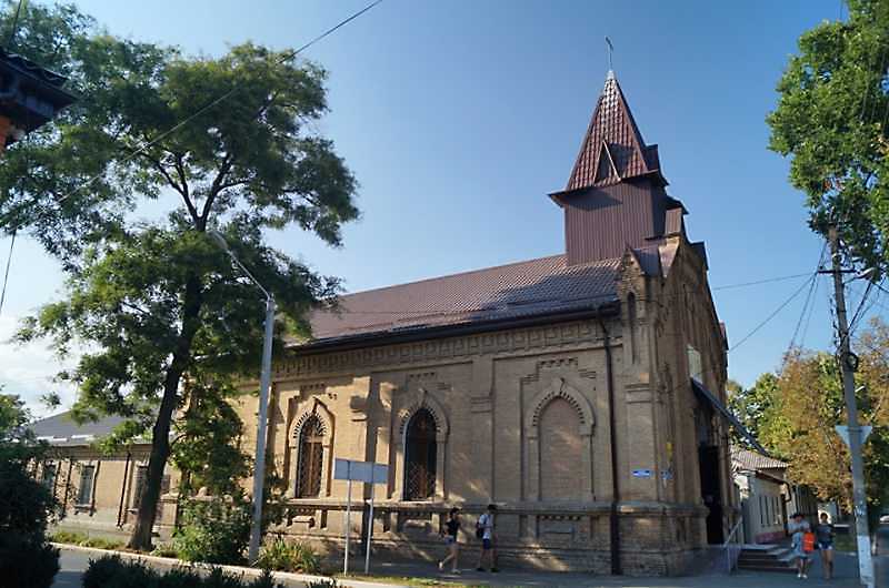Вул. Покровська, 43 (на розі із вул. Адмирала Холостякова). Церква Непорочного зачаття (станом на 2019 р.).