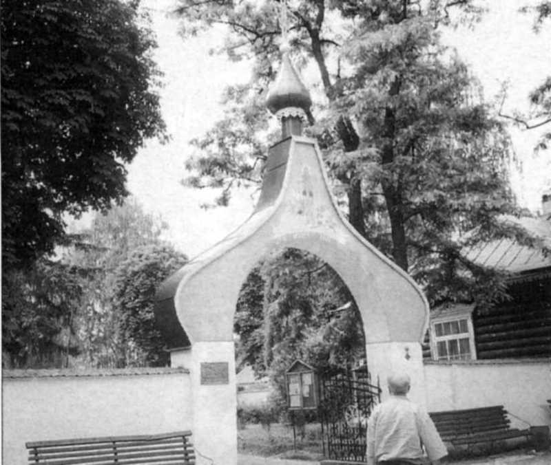 Брама на господарську територію. Фото автора, червень 1998 р.Розмір зображення: 800:676 піксел Джерело: Слободян В. Церкви Холмської єпархії. – Львів: Наукове товариство ім. Шевченка, 2005 р., с. 469. |