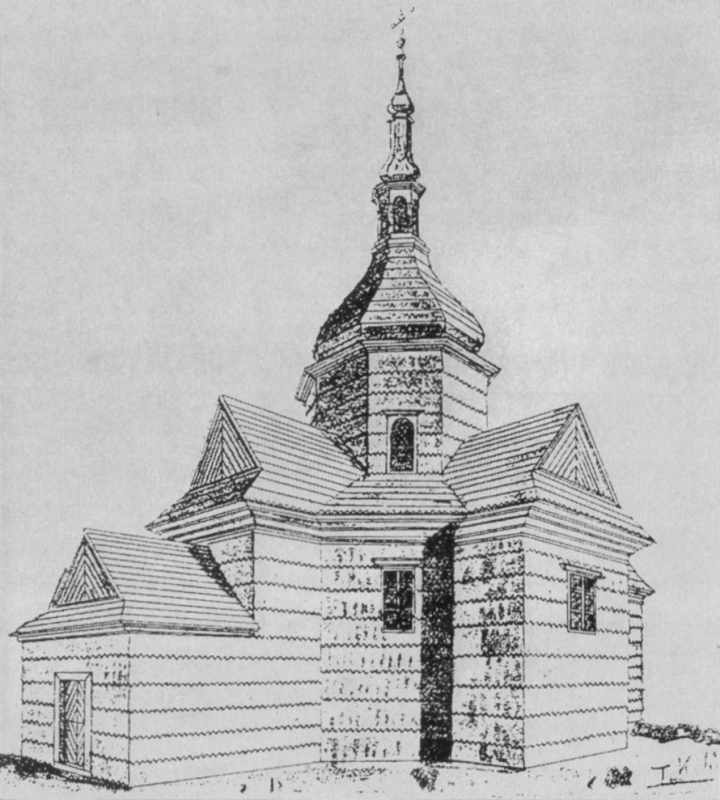 КостелРозмір зображення: 720:800 піксел Загальний вигляд Джерело: Titus D. Hewryk Masterpieces in wood: houses of worship in Ukraine. – New York, 1987, № 191. |