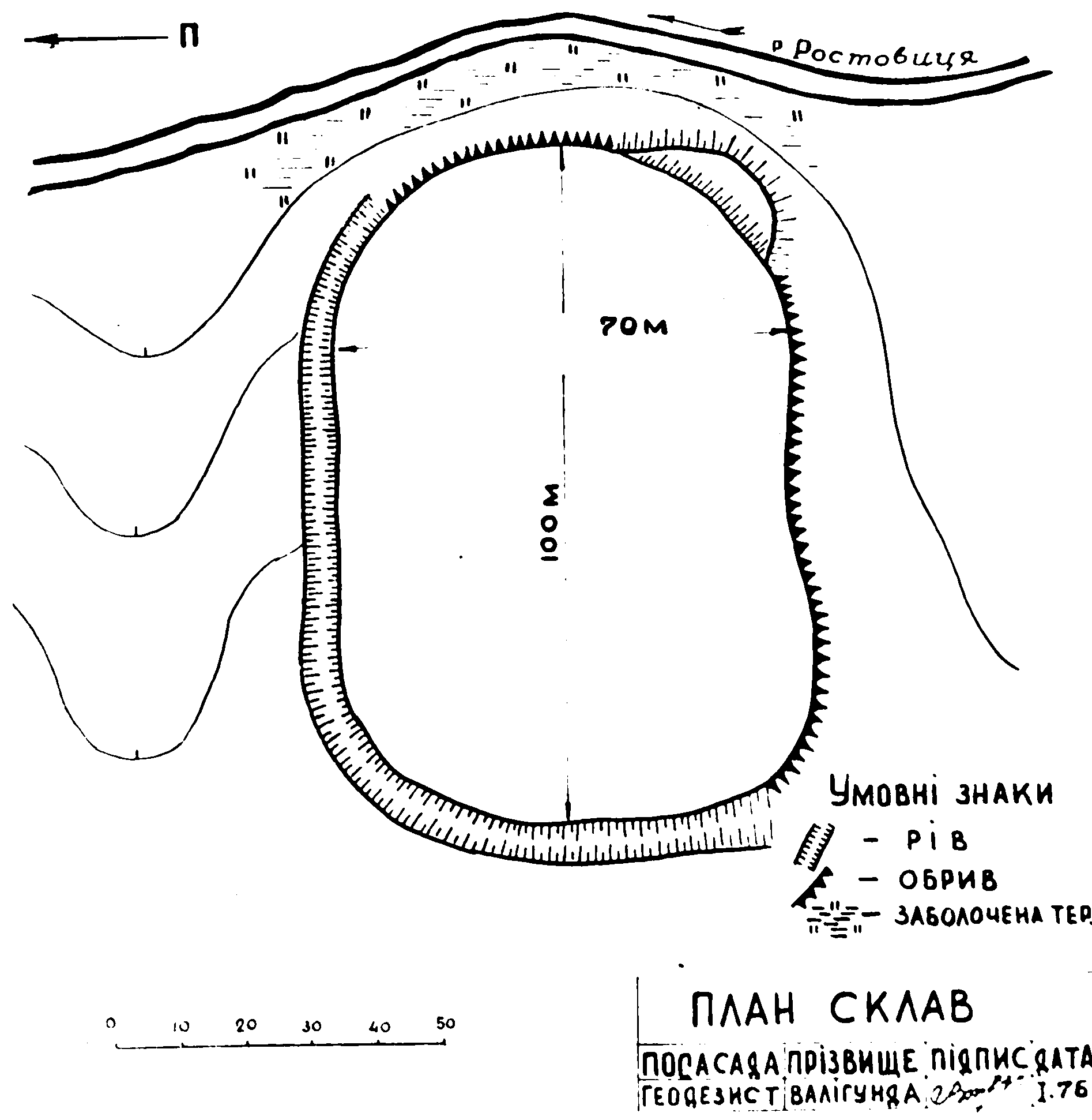 Лівобережне городище літописного міста Ніятин. Схематичний план.