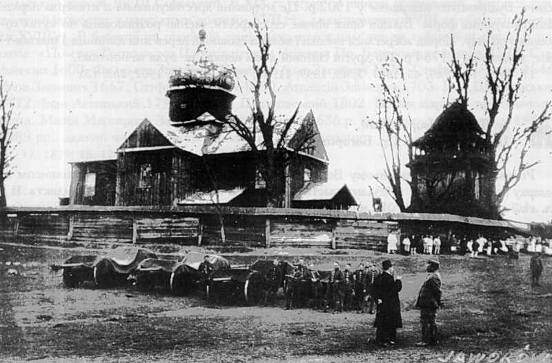 Яворів. Церква св. Юрія, 1744 р. Розібрана на переломі ХІХ/ХХ ст. Світлина 1890-х pp. зі збірки В. Ольхом’яка.