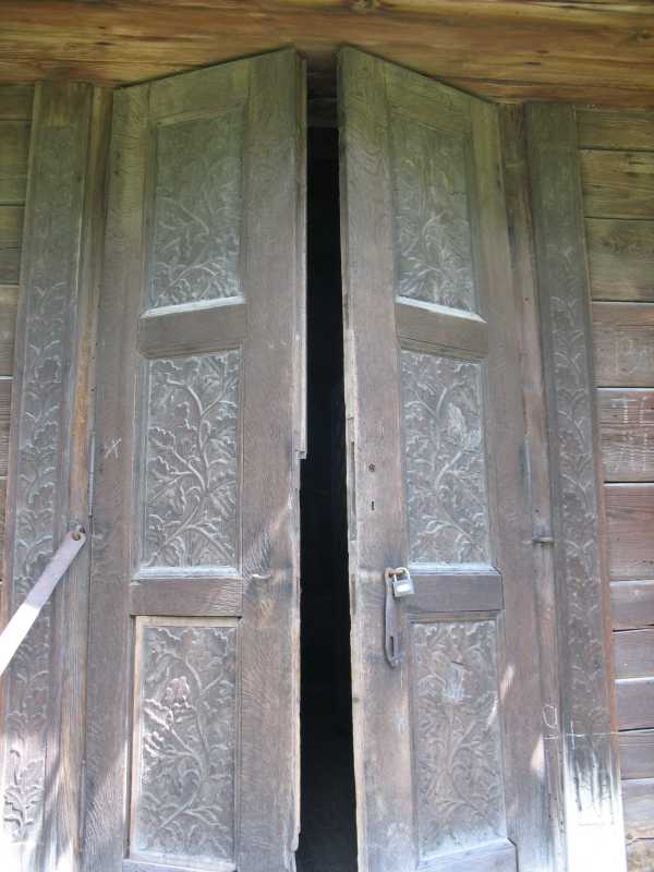 Двері головного входу Розмір зображення: 600:800 піксел Фото Зенона Боровця і Богдана Тхора, 10 серпня 2011 р. Вкладені елементи Рельєфна вставка дверей