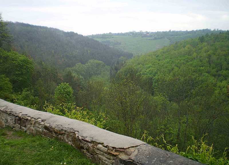 2016 р. Вид на долину р. Вільховець від замкуРозмір зображення: 800:576 піксел Фото Дмитра Вортмана, 12 жовтня 2016 р. |