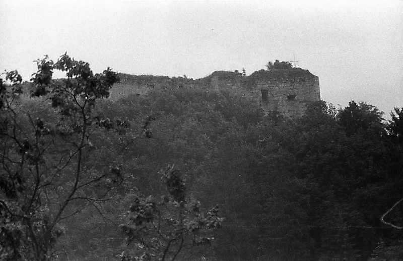 1988 р. Загальний вигляд замку з півночі, з башти костелуРозмір зображення: 800:517 піксел 1988 р. 20 червня. Фото М.І.Жарких. Негатека, № 411-02. |
