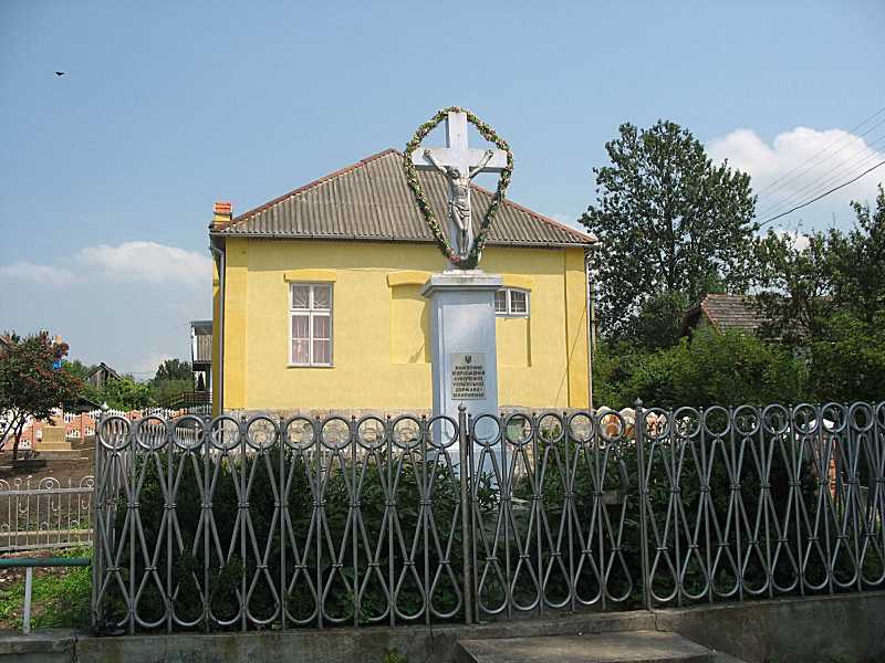 Пам’ятний хрестРозмір зображення: 800:600 піксел На тлі музею Ярорслави Стецько. Фото Зенона Боровця і Богдана Тхора, 6 серпня 2010 р. Напис: «Пам’ятник відродження суверенної Української держави 16 липня 1990 р.» |