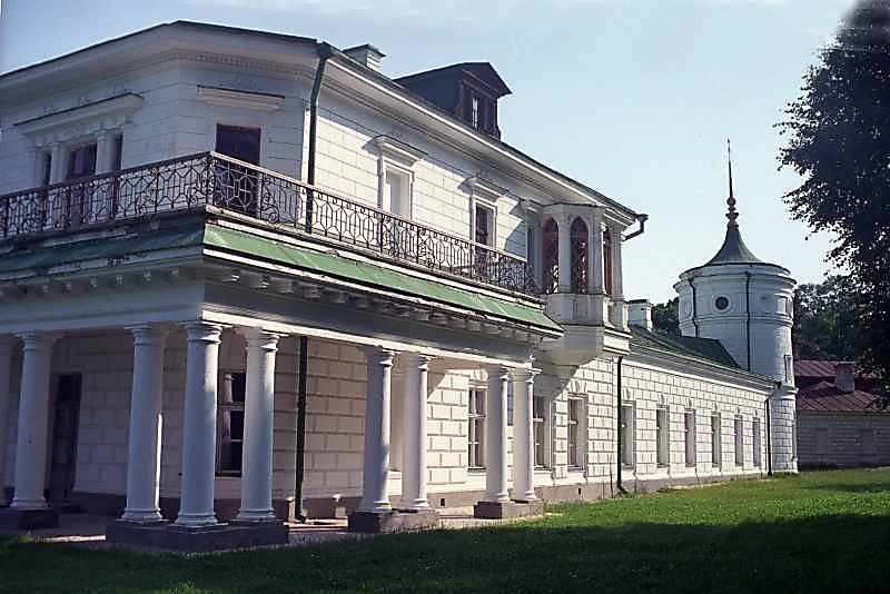 2000 р. Південний фасад палацу, південного флігеля і башти. Вигляд з південного заходуРозмір зображення: 800:534 піксел Фото М.І.Жарких 20.08.2000 р. (негатека, № 932-31). |
