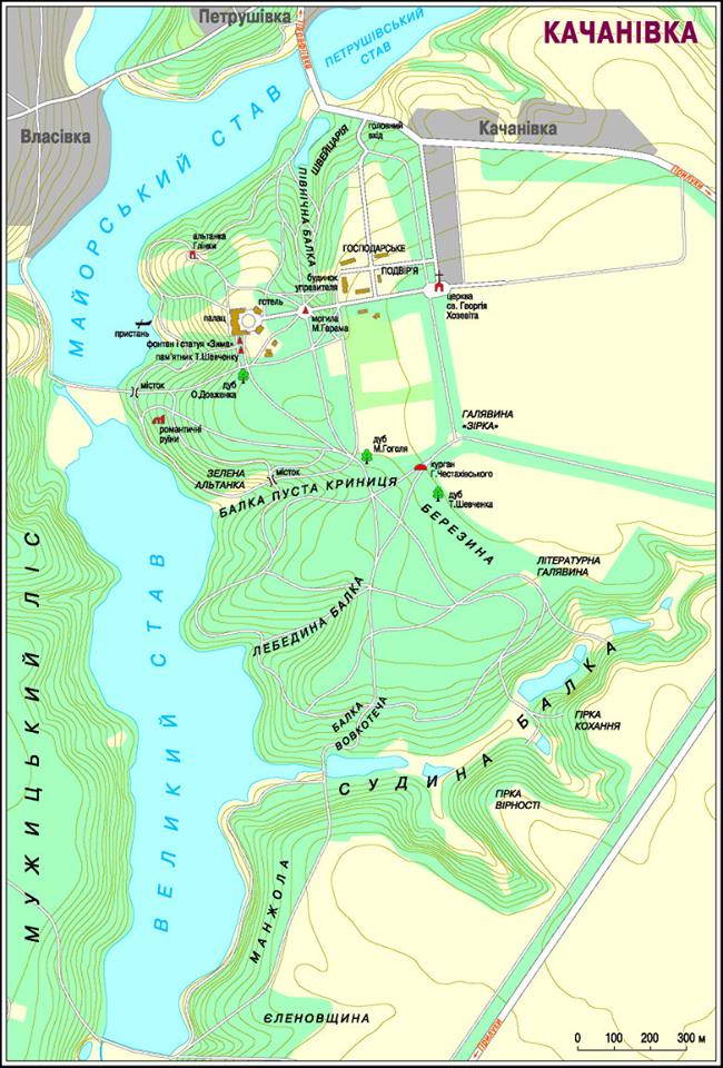 План Качанівської садибиРозмір зображення: 650:960 піксел Карта накреслена Дмитром Вортманом, опублікована 14.02.2014 р. Умовні знаки |