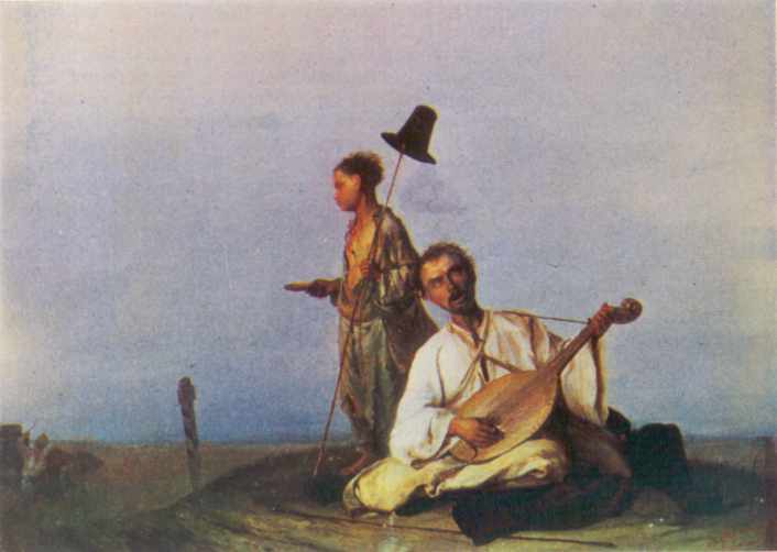 Кобзар з поводирем на шляхуРозмір зображення: 706:502 піксел 1854 р. Джерело: Лобановський Б.Б., Говдя П.І. Українське мистецтво 2 п.19 – п.20 ст. – К.: Мистецтво, 1989 р., c. 69. |