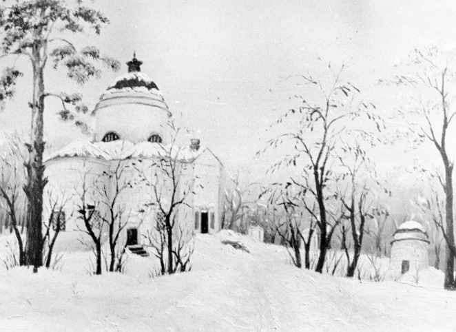 Тодашак М.М. Церква в Качанівці.Розмір зображення: 662:482 піксел 1960-і роки. Олія Джерело: фотографія з фондів Качанівського заповідника. |