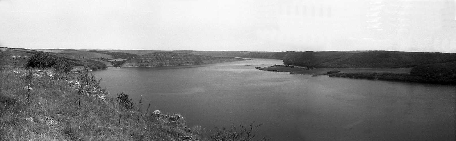 1995 р. Панорама гирла Студениці та Дністровського водосховища із заходуРозмір зображення: 1600:495 піксел 1995 р. 7 серпня. Фото М.І.Жарких. Негатека, № 877-28+30. |