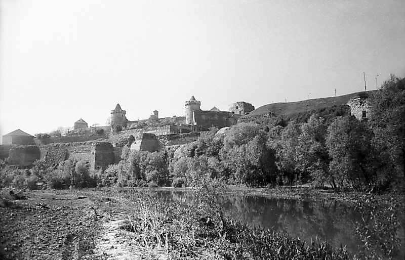 1979 р. Панорама Старого і Нового замків з північного заходуРозмір зображення: 800:514 піксел 1979 р. 16 травня. Фото М.І.Жарких. Негатека, № 092-35. |