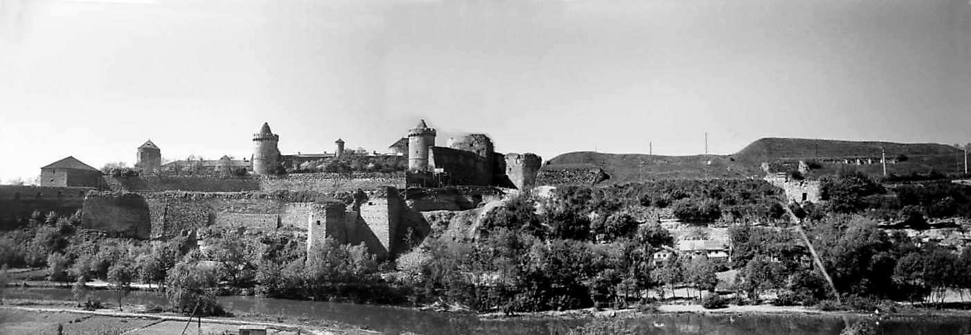 1979 р. Панорама Старого і Нового замків з півночіРозмір зображення: 1402:484 піксел 1979 р. 16 травня. Фото М.І.Жарких. Негатека, № 093-03+4. |