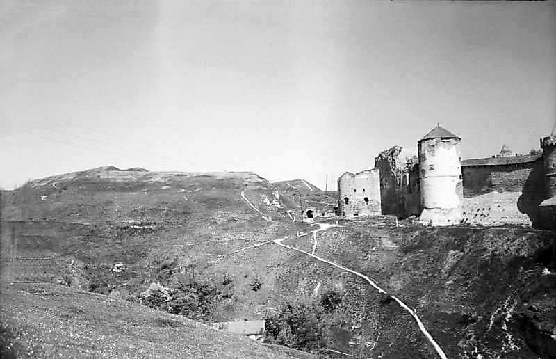 Новий замок і західна частина Старого замкуРозмір зображення: 800:516 піксел 1979 р. 16 травня. Фото М.І.Жарких. Негатека, № 094-43. |