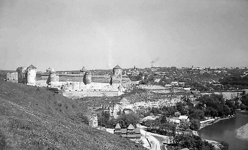 1979 р. Старий замок, Карвасари та Польські фільварки. Вигляд з півдняРозмір зображення: 800:484 піксел 1979 р. 16 травня. Фото М.І.Жарких. Негатека, № 095-06. |