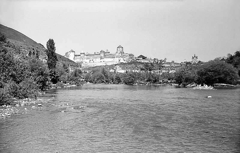1979 р. Старий замок, Карвасари та Польські фільварки. Вигляд з півдняРозмір зображення: 800:510 піксел 1979 р. 16 травня. Фото М.І.Жарких. Негатека, № 095-13. |