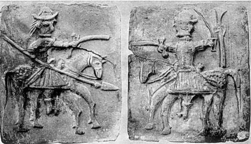 Козаки. Кахлі з Кам’янця-Подільського. Теракота. Кінець XVI ст. Кам’янець-Подільський історичний музей-заповідник.