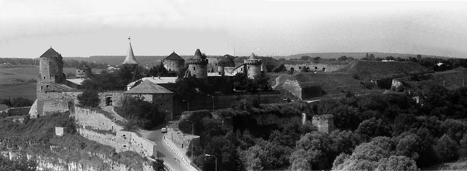 1989 р. Панорама Старого і Нового замків зі сходу, з Вірменського бастіонуРозмір зображення: 1600:587 піксел 1989 р. 21 серпня. Фото М.І.Жарких. Негатека, № 600-09+10. |